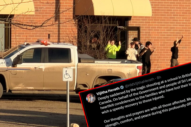 කැනඩාවේ බ්රිටිෂ් කොලොම්බියා ප්රදේශයේ පාසලක සිදුවු වෙඩි තැබීමේ සිද්ධිය සම්බන්ධයෙන් විදේශ අමාත්ය විජිත හේරත් මහතා එරට රජය වෙත සිය සංවේගය පල කර තිබේ.