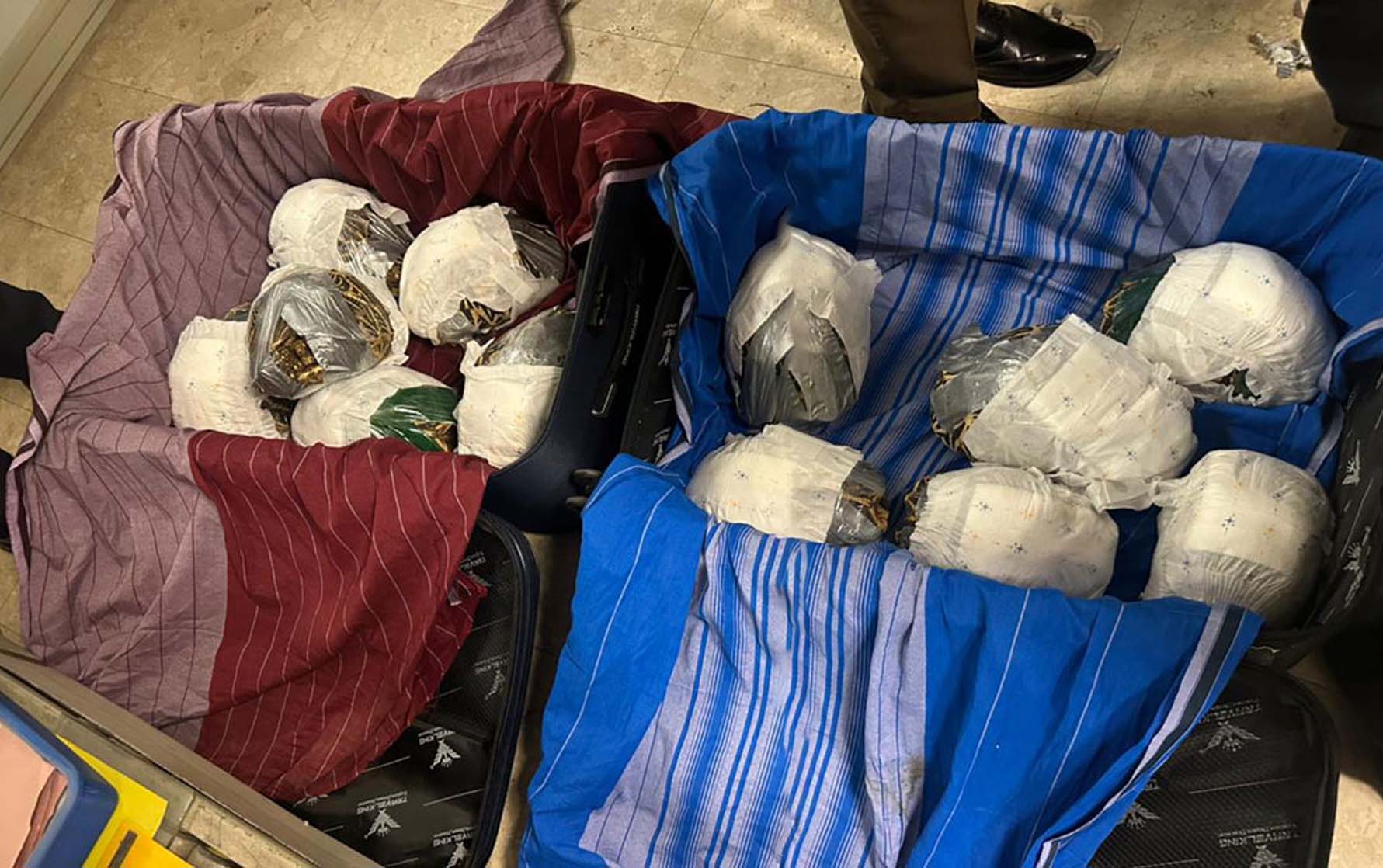 රුපියල් එක් කෝටි තිස් පන් ලක්ෂයක් වටිනා "තාරකා " ( මේවර ) ඉබ්බන් 25 දෙනෙකු නීතිවිරෝධී ලෙස මැලේසියාවට රැගෙන යාමට තැත් කළ ශ්රී ලාංකික ගුවන් මගීන් දෙදෙනෙකු සමග කටුනායක ගුවන් තොටුපොළ පිටත්වීමේ පර්යන්තයේ රාජකාරී සදහා අනුයුක්ත කර සිටි ගුවන් තොටුපොළ රේගු නිලධාරීන් සහ ශ්රී ලංකා රේගුවේ ජෛව විවිධත්ව , සංස්කෘතික සහ ජාතික උරුමයන් ආරක්ෂණ ඒකකයේ නිලධාරීන් පිරිසක් විසින් අත් අඩංගුවට ගෙන තිබේ . |