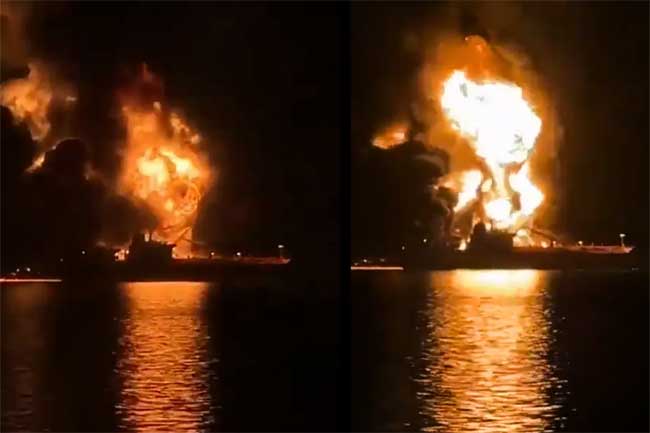 ඉරාක මුහුදු සීමාවේ දී ඉරානය තෙල් නැව් දෙකක් ගිනිබත් කරයි