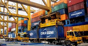 වරාය පරිශ්රය තුළ බහාලුම් ප්රවාහන තදබදයක්